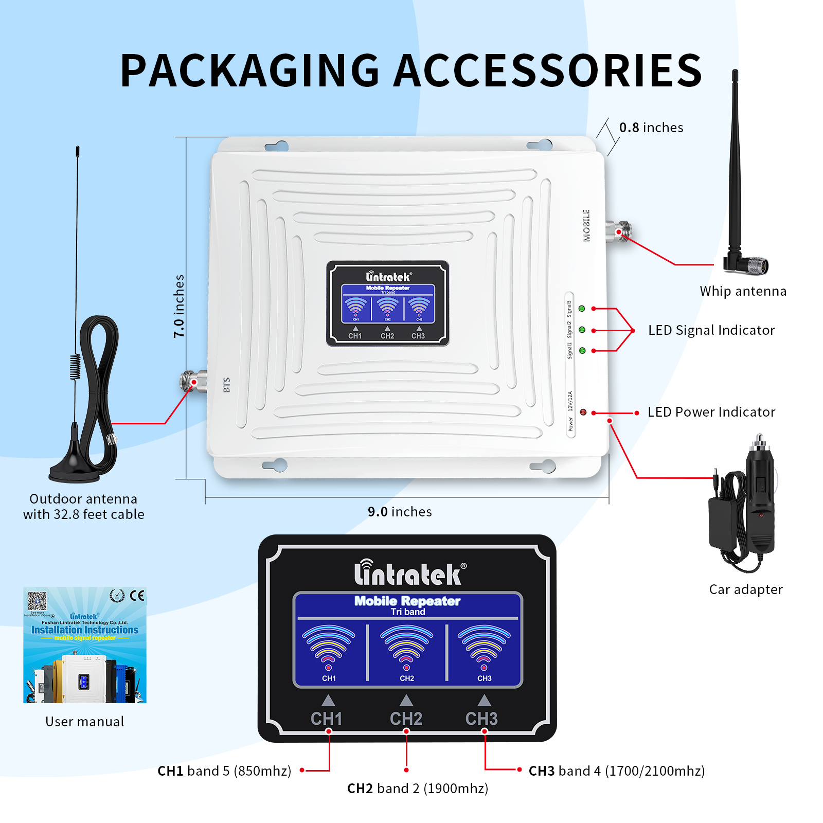 - Integrated equipment:Integrating the receiving antenna, amplifier, and transmitting antenna into one module, easy to install but with low signal gain, suitable for short distance urban commuting.