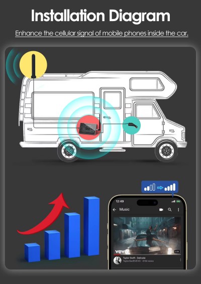 1. The gain value of a car/rv/truck/orv signal booster is not necessarily better the higher: the gain value (dB) reflects the ability of signal boosting, but excessively high gain may cause signal overload or interference with the base station. It is recommended to choose products with a gain between 50-70dB to balance coverage and stability.